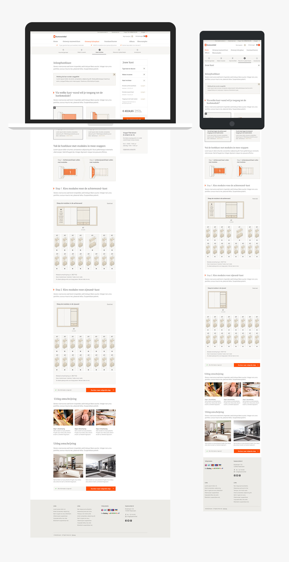 Een interieurbouwer wil meegaan met zijn tijd en via een online kanaal kasten aan particulieren verkopen. In opdracht van Congo's Solutions ontwierp ik een kasten-configurator waarmee iedereen een (inloop)kast geheel naar eigen smaak en wens kan ontwerpen en bestellen.